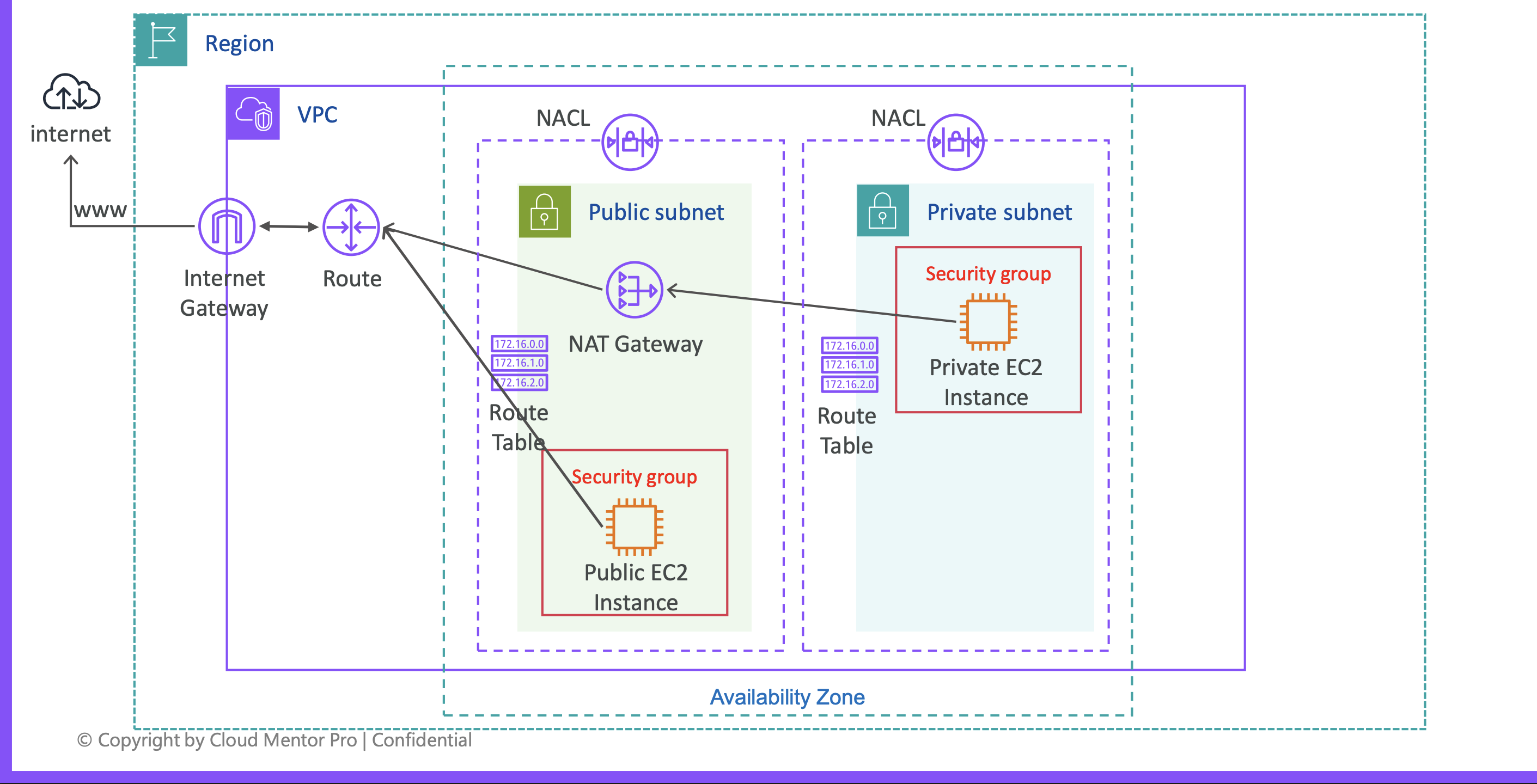 Attach vào VPC để enable inbound/outbound internet connectivity